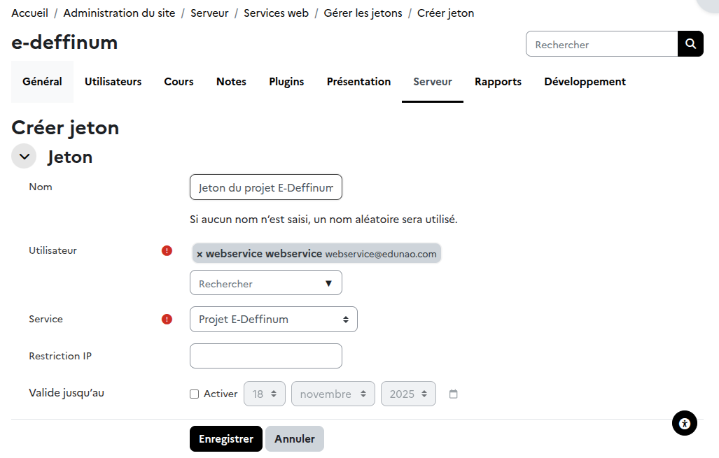 🌐 Étape 3 — Configurer les WebServices