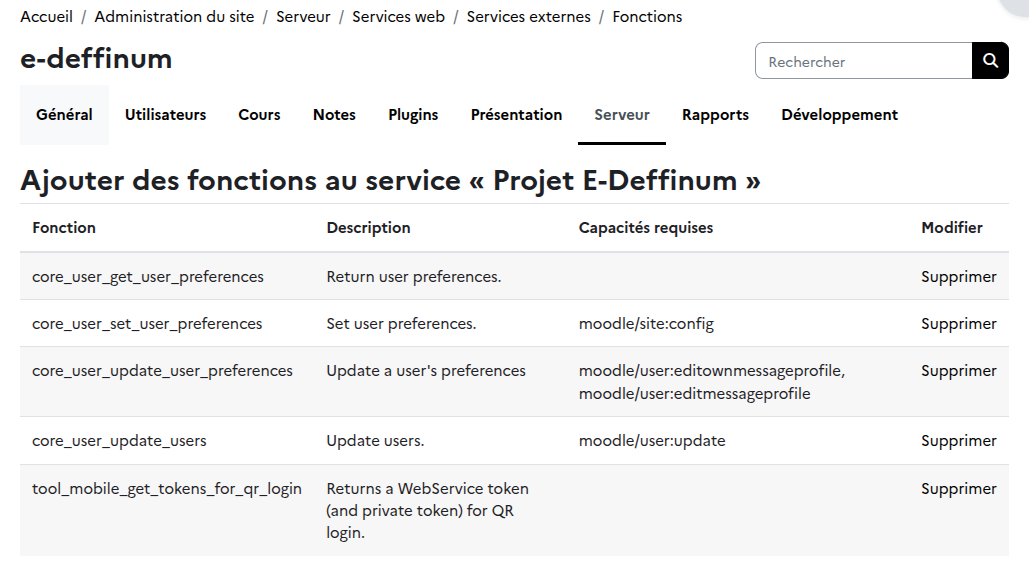 Administration du site → Serveur → Services Web → Vue d’ensemble -